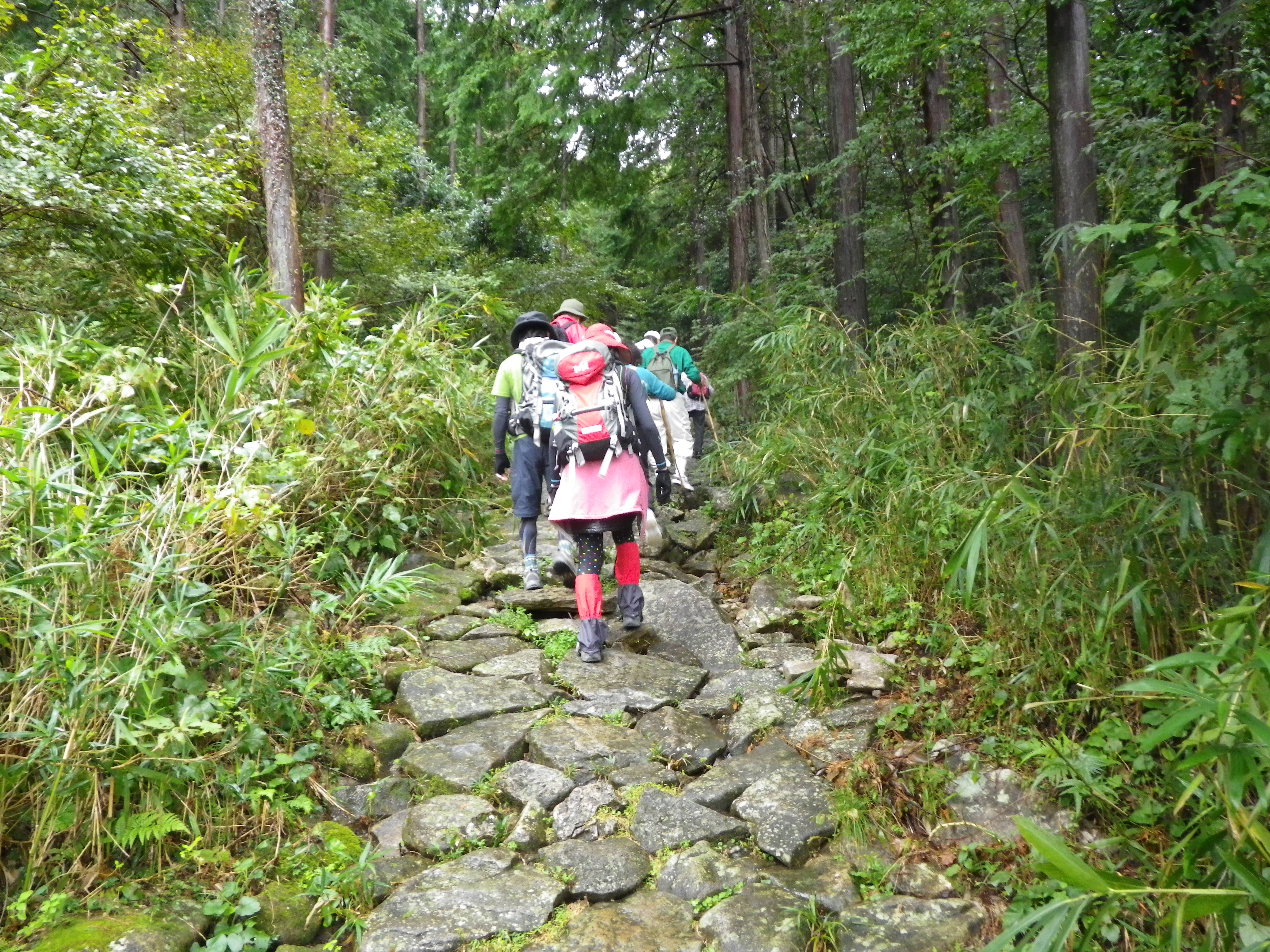 10月15日、三重の森林と木づかいフェアの開催に合わせ、森林・林業への関心と理解を深めていただくため、一般公募により熊野古道と森林とのふれあいバスツアーを開催しました。当日は雨とあいにくの天気でしたが、馬越峠を歩いた後熊野古道センターで開催されている三重の森林と木づかいフェアの会場に立ち寄りました。